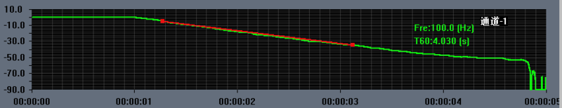 通过无指向声源发声MLS信号(确定序列信号),通过相关运算获得脉冲信号,再进行反向积分获得声压级衰变曲线。